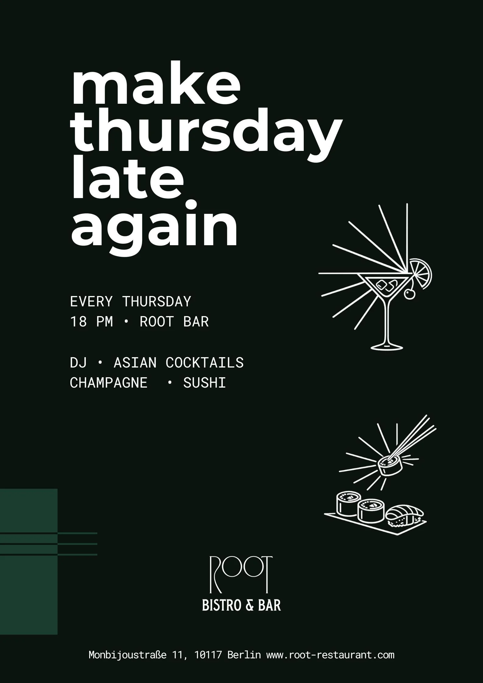 No big plans. No pressure. Just good music, strong drinks, and that old Thursday energy — like it used to be, only better.